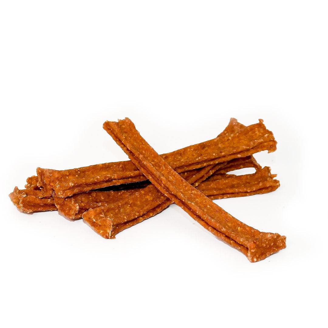Das sorgfältig ausgewählte Hähnchenfleisch und die Naturrinderhaut werden lokal bezogen und sind zu 100% rückverfolgbar. Durch deren schonenden Herstellungsprozess bleiben die in den Rohstoffen enthaltenen Nährstoffe erhalten und helfen Deinem Hund lange gesund und vital zu bleiben.